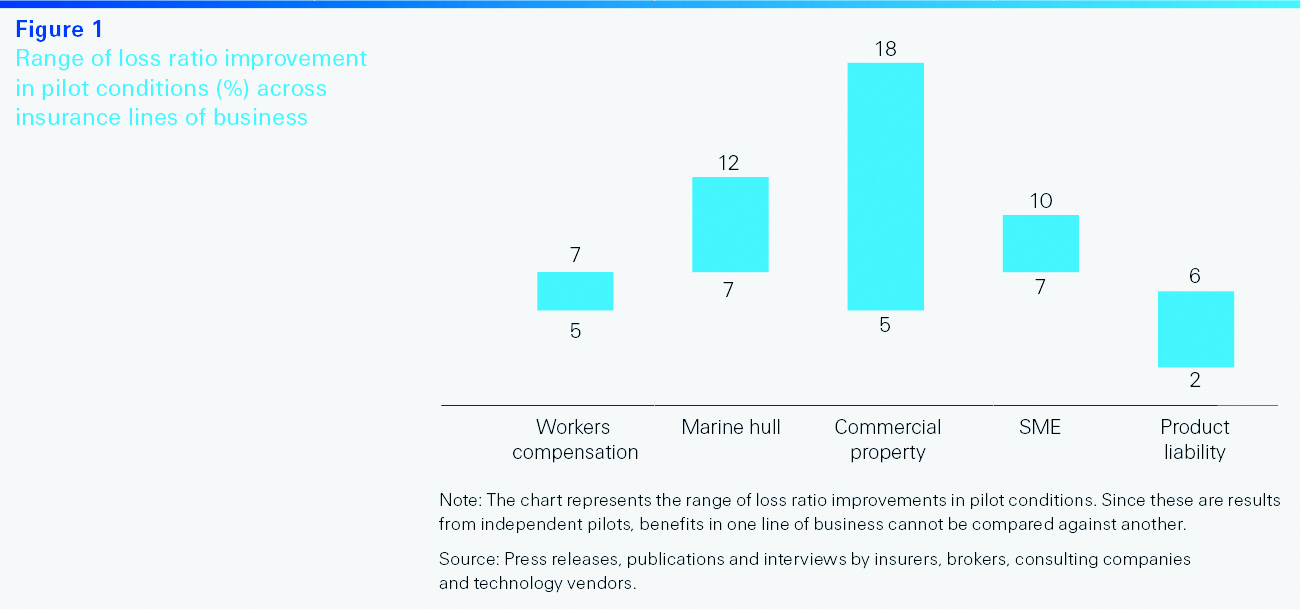 Range of loss ratio improvement in pilot conditions (%) across insurance lines of business |