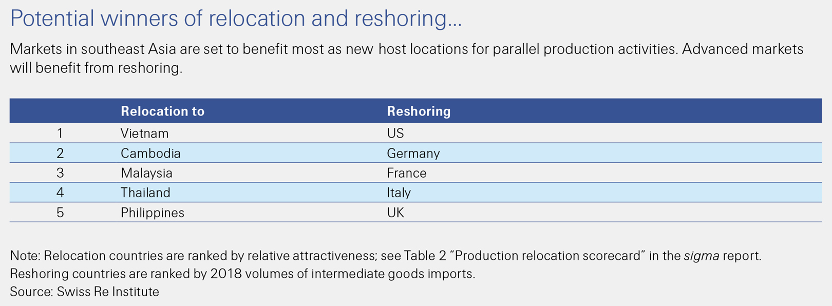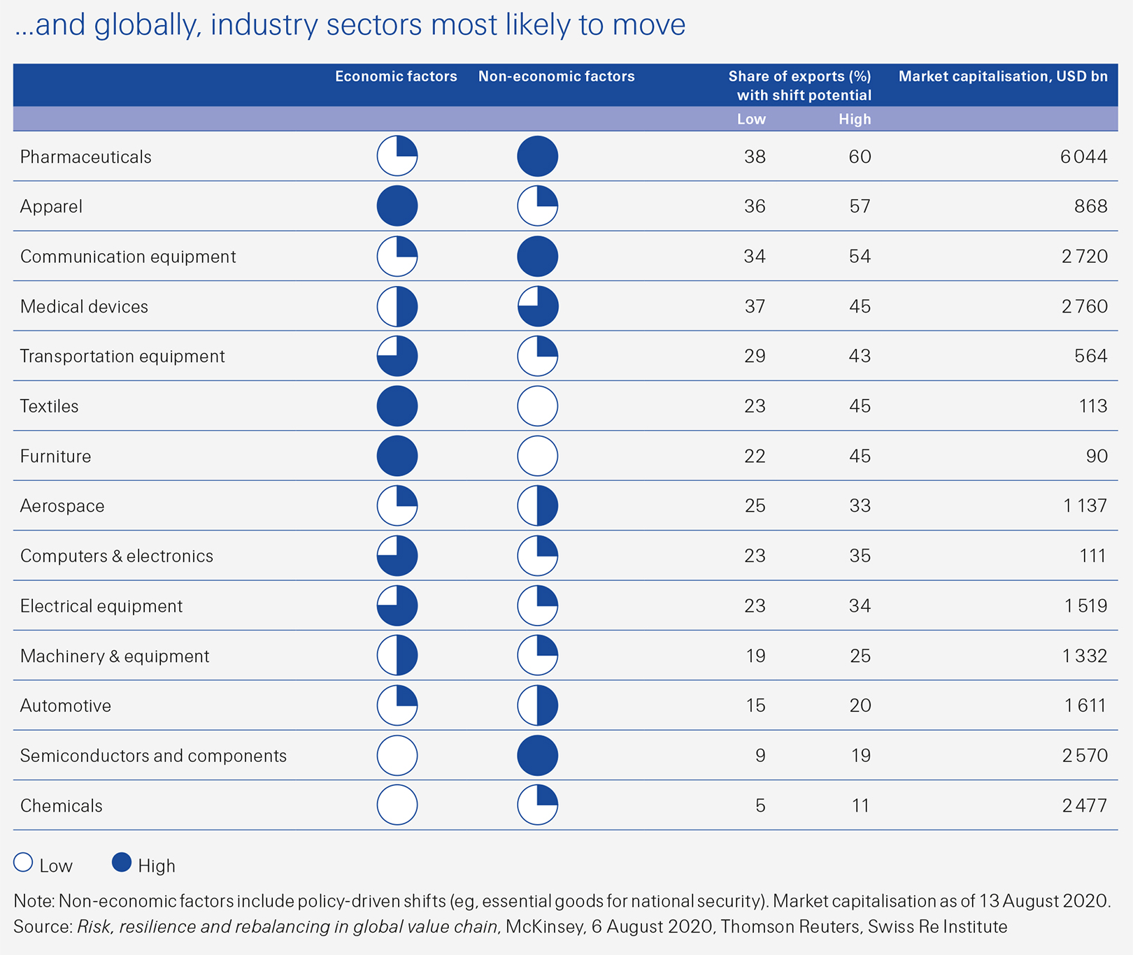 In the wake of this year's pandemic, the healthcare sector will be one of the main areas of GSC reform. The motivation is in large part political, as governments seek to safeguard national supplies of critical medical equipment and drugs. Other sectors at the forefront of GSC restructuring will include technology, consumer staples, textiles and electronics, the sigma report says.